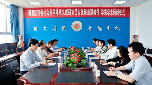 5月9日上午,我校在新校区第一会议室举行聘请仪式,陕西省社科院胡义成研究员受聘为我校兼职教授、学报(社科版)学术顾问。副院长赵荣侠出席会议并讲话,学科建设与研究生教育管理处处长吴毅主持会议。