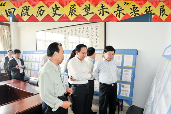 5月17日上午,党委书记、院长王志刚,党委副书记米晓东在思贤楼419展室参观 “回顾历史、展望未来”票证展。