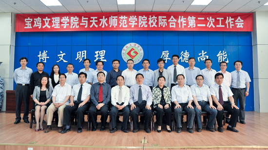 王志刚和杜奇松分别致辞。王志刚代表宝鸡文理学院党委、行政及全校师生员工,对杜松奇书记一行莅临我校表示热烈欢迎和衷心感谢!他指出,回顾2010年6月中旬在天水师院举行的两校校际合作第一次工作会,对两校的发展非常重要,学校层面启动了校际合作工作机制,近两年来两校相关部门、院系进行了形式多样的合作交流,积极贯彻落实“国家中长期教育改革和发展规划纲要”,取得很大成绩。王志刚用六句话介绍了我校两年来的建设发展。第一,学科建设成效显著,新增硕士学位授予单位立项建设顺利通过期中检查,正在准备迎接期满验收即将获得授权,开展研究生教育;第二,深化教学改革,完善提高教学质量长效机制,教育教学质量和人才培养质量稳步提高,积极培养品德优、基础实、能力强、素质高的应用型人才;第三,加强师资队伍建设,教师队伍结构不断优化;第四,加强大学文化和特色建设,办学特色日益彰显,文化铸校,用周秦文化的精华育人,贯穿于人才培养过程中,成立了横渠书院,建设现代大学的进程中注重挖掘传统文化,在服务地方特色上,加强省级平台建设,充分利用地方文化资源,在灾害监测、渭河治理、中草药研制、秦岭药用植物资源开发和利用等方面,体现学科优势、研究特色;第五,校地合作良性互动,筹建宝鸡大学全面启动;第六,创优争先活动扎实开展,党建工作科学化水平提高。王志刚指出,两校关系密切,同根同源,校际合作前景广阔,并对两校合作发展提出了四个需要共同思考的问题:第一,如何深化教学改革,提高人才培养质量;第二,如何加强学科建设,提升学科实力、办学水平与核心竞争力;第三,如何加强大学生综合素质教育和党建工作,提高党建工作科学化水平;第四,如何加强现代学校制度建设,完善大学内部机制。