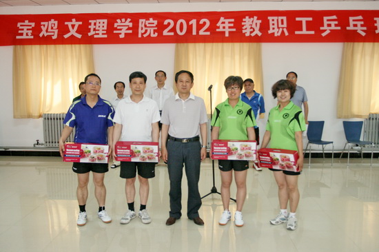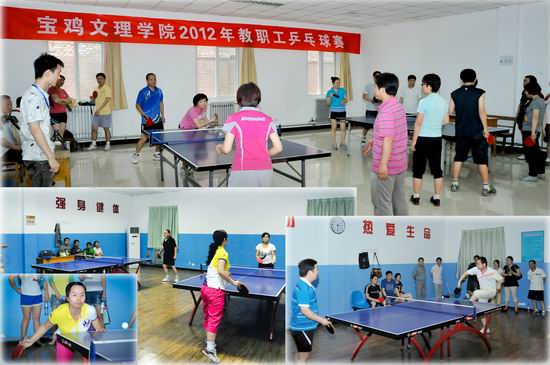 我校2012年教职工乒乓球赛于6月16日下午至17日在“教职工之家”举行。党委书记、院长王志刚,党委副书记米晓东,党委副书记、工会主席李全武出席开闭幕式。李全武宣布比赛开始,工会副主席郭俊理主持开幕式。