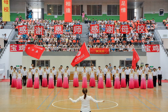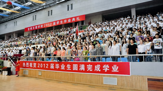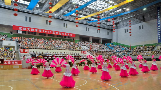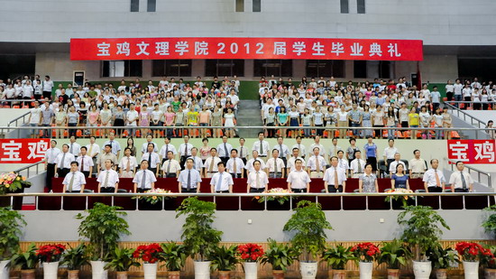 6月25日上午,我校2012届学生毕业典礼在宝鸡市体育馆隆重举行。党委书记、院长王志刚,宝鸡市体育局长李富生,党委副书记米晓东、李全武,副院长傅志军、赵荣侠、杨子元等出席典礼仪式。各部门、各单位负责人、全体毕业生及在校生代表共4000多人参加了毕业典礼。典礼由傅志军主持。