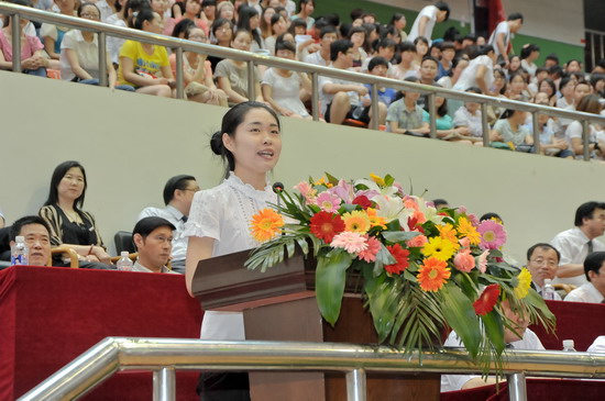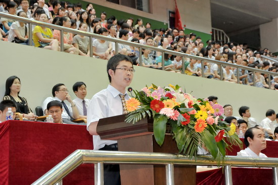物理与信息技术系副教授王参军博士代表全体教师对毕业生圆满完成学业表示热烈祝贺,他与学生们分享了自己作为一个承上启下的文理人的体悟与感受,对毕业生们的未来寄予了美好的期望。机电工程系毕业生刘锋代表全体毕业生向四年来辛勤培育他们的老师们表示了诚挚的谢意,表示要做一个睿智而富有激情的人,胸怀大志而脚踏实地的人,富有责任并勇挑重担的人。历史文化与旅游系2009级学生刘静雯代表全体在校生衷心的祝愿全体毕业生一帆风顺,事业有成,表示一定会紧握接力棒,用他们的青春和智慧,续写宝文理辉煌的篇章。