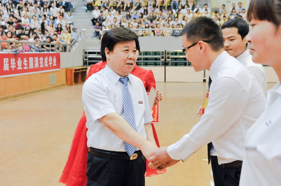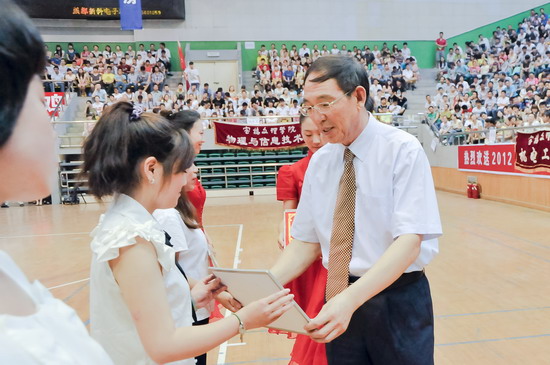在毕业典礼王志刚向毕业生代表颁发了毕业证书;米晓东、李全武为西部志愿者颁发奖金;赵荣侠、杨子元为校级优秀毕业生代表颁发荣誉证书。教务处处长王富平宣读了2012届学生毕业资格审查结果;学工部(处)长、毕业生就业指导服务中心主任李周让宣布校级优秀毕业生及大学生服务西部志愿者名单。
