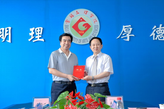 王志刚与王尚义在共同签署协议后代表双方学校互赠了礼物。王尚义受聘为我院兼职教授。