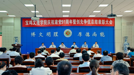 我校庆祝建党91周年暨创先争优总结表彰大会于6月28日在新校区甘棠厅召开。校领导、各部门、各单位党政主要负责人、各党总支副书记、受表彰的先进集体代表和先进个人参加了大会,会议由党委副书记米晓东主持。