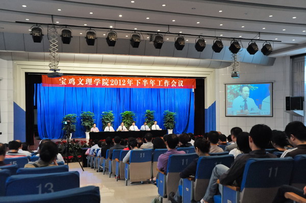 在安排部署下半年党政主要工作时,王志刚指出本学期学校党政工作总体上要继续按照《学院“十二五”及中长期发展规划》和2012年党政工作要点,围绕“实现研究生教育和筹建宝鸡大学”两大历史任务和硕士学位授权单位立项建设期满验收并获得授权、人才培养方案的修订及实施、大学章程的制定等三件大事展开。他着重强调了以下六个方面的工作:一是着力学科建设和科研工作,精心做好硕士学位授权单位立项建设期满验收各项准备工作,实现提升办学层次目标;二是着力深化教学改革,精心做好人才培养方案修订工作,完善提高教育教学质量长效机制,促进人才培养质量不断提高;三是着力加强学生教育管理工作,创新大学生思想教育内容途径方式,不断提高大学生综合素质和就业竞争能力;四是着力加强大学文化建设,精心做好学校章程研究制定工作,不断提高管理科学化水平;五是着力加强后勤基建财务和资产管理工作,不断提高后勤服务保障能力;六是着力加强党建工作,精心组织好学习贯彻党的十八大精神活动,不断提高党建工作科学化水平和干部兴校办学能力。