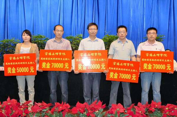 大会还表彰和宣读了入选“新世纪优秀人才支持计划”的李剑教授、主持国家级科研项目的刘林魁等五位博士、主持国家重点实验室开放基金项目王宏社等三位教师、荣获“陕西省教育系统优秀工会积极分子”称号的刘进锁副教授以及获批为2012年陕西高等学校省级“专业综合改革试点”项目中国语言文学系汉语言文学专业等2012年上半年以来的各类获奖及获批的科研项目。(党委办公室、院长办公室供稿)