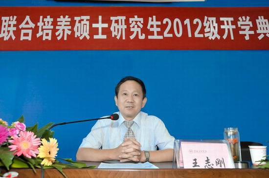 在典礼上,王志刚发表了题为《立心立命 笃学求真 努力做新时代勇于创新的高素质人才》的重要讲话。他代表学校党委、行政和全体师生员工,向新入学的2012级硕士研究生表示诚挚祝贺和热烈欢迎!他指出,这是我校历史上首次全面培养硕士研究生,标志着我校办学实力和办学水平的显著提升,也是我校更名为宝鸡大学迈出的坚实一步。他向新生介绍了宝鸡的历史、经济、文化、交通等基本概况以及学校发展的历史沿革和学校近年来在学科建设、本科教育、导师队伍、办学环境等方面取得的重要成就。他向2012级硕士研究生提出了希望和要求:一是志存高远,担当责任,胸怀远大理想;二是勤学笃行,严谨求实,努力提升创新能力。他指出,一个合格的乃至优秀的研究生应具备以下几方面的意识和能力,即四个意识:鉴别意识,批判意识、创新意识、道德意识。三个能力:专业能力、表达能力、创新能力;三是健全身心,和谐发展,力求综合素质的整体提升。他说,6位研究生作为宝鸡文理学院学生中知识层次最高、思想最活跃、最具发展潜力的一个群体,希望他们发扬“艰苦奋斗,励精图治,开拓创新,敢为人先,立心立命,勇于担当”的宝文理大学精神,刻苦努力、开拓进取,用青春与汗水、知识与毅力,取得优异的成绩,谱写人生美好的华章!