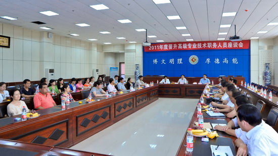 在教师节到来之际,9月5日下午,我校在新校区甘棠厅召开2011年度新晋升高级专业技术职务人员座谈会。党委书记、校长王志刚,副校长傅志军、赵荣侠出席会议。王志刚发表重要讲话,傅志军主持会议。