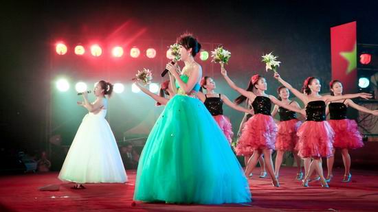 乐鸣舞起,在大型开场舞《九月欢歌》欢快优美的乐曲声中,晚会缓缓拉开了帷幕。伴随热烈的掌声,精心准备的节目逐一登场,呈现了“青春万岁”和“祖国万岁”两个华彩篇章,喜迎2012级“文理人”,向祖国63周年华诞献礼。充满青春活力的歌曲联唱《校园之声》、歌伴舞《我相信》彰显了新时期大学生的青春风采和对未来美好生活的向往;诗朗诵《青春万岁》表达了文理学子坚持远大理想、奋发努力学习、立志报效祖国的坚定决心;歌伴舞《儿行千里》、《十五的月亮》旋律优美,真挚感人,唱出了新生对父母及军训教官的感恩与祝福;96401部队军训教官演唱的《送你一枚小弹壳》将当代革命军人的价值观和才艺展示无余,也把同学们在军训中焕发出的激情和力量再次点燃;歌曲联唱《红歌嘹亮》旋律脍炙人口,把现场观众带回到了难忘的革命岁月;歌伴舞《哪达也不如咱山沟沟好》旋律高亢悠扬,让现场的每位观众深深的感受到了黄土文化的无穷魅力;2012级新生表演的激昂奋进的校歌,唱出了文理学子的豪情壮志和对学校“十二五”发展前景的美好憧憬;舞蹈《中国妈妈》、《为祖国祝福》、《江山如此多情》表达了文理人对祖国母亲的深情祝福;在全校师生喜迎党的十八大胜利召开之际,歌舞《各族人民心向党》作为晚会的压轴节目,表达了文理人对党抒不完的爱戴与诉不尽的深情,更是将整台晚会推向了高潮。最后,在歌舞《今夜无眠》的优美旋律中,校领导走上舞台,与演职人员一一握手,祝贺演出成功并合影留念。