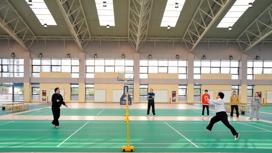 为了树立全民健身、终身体育的理念,吸引师生员工到体育馆利用业余时间坚持体育锻炼,在体育馆落成后,学校在“双节”期间(10月1日—6日)对全校师生免费开放。学校将体育馆15块羽毛球场地和20块乒乓球场地根据各工会分会师生人数进行了划分。要求各分会在“双节”期间指派专人负责并积极组织参加各项体育活动,确保场地得到有效使用。