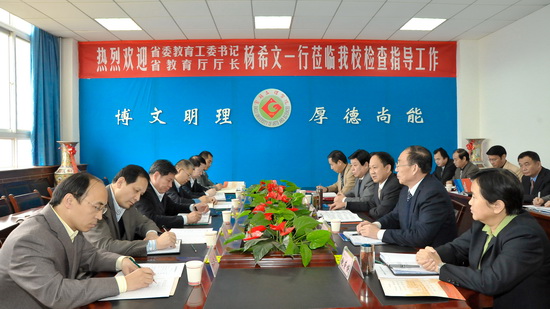 省委教育工委、省教育厅办公室主任惠朝阳,省教育厅体育卫生与艺术教育处处长李鸣、基础教育一处处长王跃生、民办教育处处长权秋虎,财务处副处长刘宏恩与我校组织部部长郑存库,宣传部部长彭志启,院长办公室副主任、高教研究室主任杨科正,财务处处长贾卫忠,学生处处长李周让、保卫处处长任红亮,后勤集团(公司)总经理李发林,教务处副处长李景宜等参加了会议。(党委办公室、院长办公室供稿)