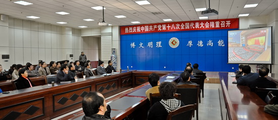 中国共产党第十八次全国代表大会大会于11月8日上午9时在北京召开。校党委中心学习组成员、校内各单位党政负责人、各党总支副书记在甘棠厅集体观看了开幕式电视直播。