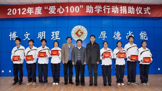 11月8日下午,我校与陕西移动宝鸡分公司在新校区甘堂厅隆重举行2012年度“爱心100”助学行动捐助仪式。宝鸡市团市委副书记王勇刚,陕西移动宝鸡分公司总经理王丁等和我校党委副书记米晓东等出席捐助仪式,学工部部长李周让主持仪式。