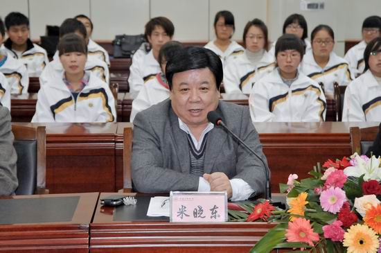 米晓东在讲话中指出,近年来,党和政府高度重视高校家庭经济困难学生的资助工作,出台了一系列的资助政策,缓解了部分学生的学习和生活压力。中国移动陕西公司在快速发展的同时,积极承担社会责任,投身公益慈善事业,“爱心100”助学行动也已经成为了一个奉献爱心、捐资助学的慈善品牌,非常感谢移动公司,希望校企合作能够不断结出新成果。他向受助学生提出三点希望,第一,要正视贫困,不畏苦难,自尊自信,自立自强。第二,要继续发扬艰苦朴素的优良作风,努力养成勤俭节约的良好生活习惯。第三,要在遵守校纪校规等方面作出表率,回报社会。