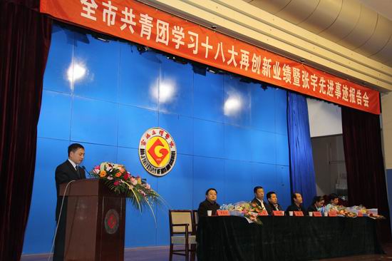 11月22日下午,由宝鸡团市委、市青联、市青企协主办,我校团委协办的全市共青团“学习十八大再创新业绩”暨张宇先进事迹报告会在我校新校区音乐厅隆重举行。宝鸡市人大常委会副主任富君、市委副秘书长马孝全、我校学工部(处)长李周让出席了报告会。报告会由团市委书记朱小强主持。