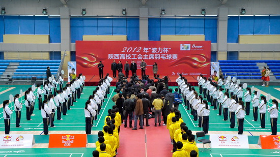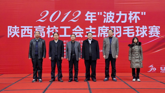 陕西高校工会主席2012年“波力杯”羽毛球赛于11月28日在我校体育馆隆重举行。省总工会副巡视员李岳文,省教育工会主席张敏,宝鸡文理学院党委书记、校长王志刚,宝鸡文理学院党委副书记、工会主席李全武,省教育工会副主席张朝维、李圣,宝鸡文理学院工会副主席张鹏出席开、闭幕式并为获奖运动员颁奖。开、闭幕式分别由省教育工会副主席张朝惟和李圣主持。