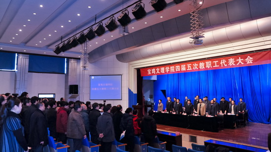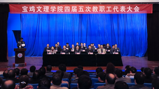 12月22日,宝鸡文理学院四届五次教职工代表大会在新校区音乐厅隆重举行。校党委书记、校长王志刚,校党委副书记米晓东,校党委副书记、工会主席李全武,副校长傅志军、赵荣侠、杨子元出席大会。147名正式代表、15名列席和特邀代表参加了本次大会。大会主要议题是听取、审议校长工作报告,审议和通过《宝鸡文理学院章程》,听取和审议二个职能部门的校务公开工作报告及四届四次教代会提案落实情况的报告。党委副书记、工会主席李全武主持大会开幕式。大会开始前召开了四届五次教代会预备会。