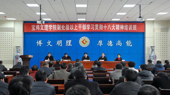 1月25日——26日,我校在新校区甘棠厅隆重举办副处级以上干部学习贯彻十八大精神培训会。校党委书记、校长王志刚,校党委副书记米晓东、李全武,副校长傅志军、赵荣侠、杨子元出席培训会。全校副处级以上干部120余人参加了培训会。李全武主持培训会。