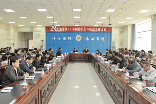 4月11日下午,我校在新校区甘棠厅召开2013年组织宣传统战工作会议。校党委书记、校长王志刚出席会议并讲话。校党委副书记李全武主持会议。