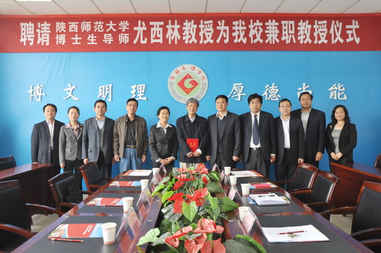 5月9日上午,我校在新校区第一会议室举行聘任仪式,陕西师范大学博士生导师尤西林教授受聘为我校兼职教授。校长白黎出席会议并讲话,副校长赵荣侠主持聘任仪式。