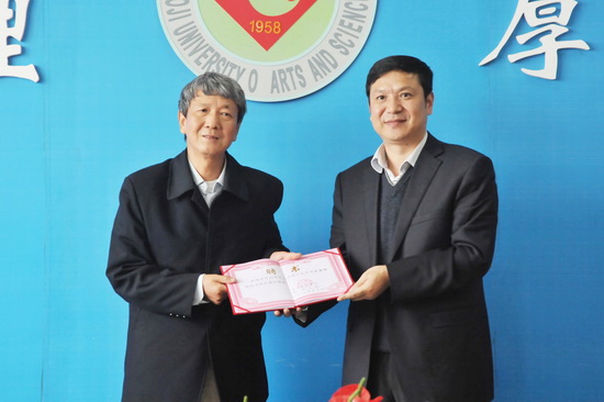聘任仪式上,白黎校长代表学校对尤西林教授来校讲学和受聘兼职教授表示欢迎和感谢!他说,尤西林教授是我国著名的美学专家,学术造诣深厚,尤教授的加盟对我校文学与新闻传播学院的发展具有重要的促进作用,我校中国语言文学学科一定能跃上新台阶。他从办学历史、师资队伍、学科建设、科学研究、人才培养等方面简要介绍了我校的基本情况。尤西林教授表示十分感谢学校的聘任,将在学术研究、青年人才推荐等方面为学校的发展贡献力量。最后,白黎校长为尤西林教授颁发了聘书。