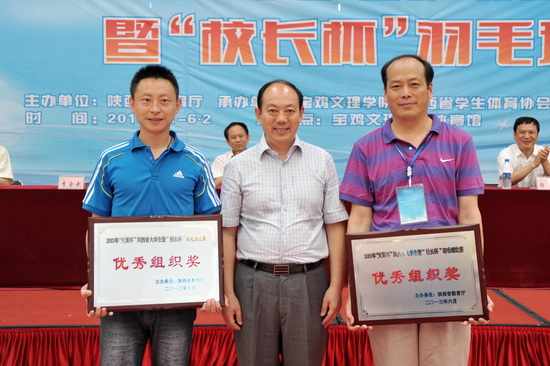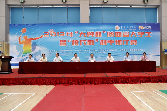 6月1日至2日,2013年“天翼杯”陕西省大学生暨“校长杯”羽毛球比赛在我校新校区体育馆举行。省委教育工委常务副书记董小龙,省委教育工委、省教育厅副巡视员王海波,我校党委书记王志刚、校长白黎、党委副书记李全武、副校长傅志军,省教育厅体卫艺处处长李鸣,省学生体育协会副秘书长张黎等领导出席本次活动。我校校长白黎致开幕词。李鸣、傅志军分别主持开闭幕式,李全武主持颁奖仪式。