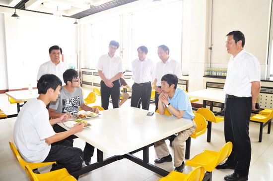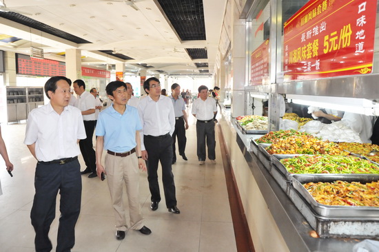 6月6日上午,省教育厅副厅长张雄强和省教育厅师资与师范教育处处长罗侃淳、省教育厅财务处副处长靳华锋等一行三人来我校检查指导学生食堂工作。校党委书记王志刚、校长白黎、党委副书记米晓东,党办主任王永君,学生处处长李周让,后勤公司董事长龙军权、后勤集团(公司)总经理李发林、保卫处副处长樊林森,院办副主任张鹤,后勤集团(公司)副总经理马旺华等陪同检查。