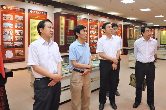 在检查开始前,张雄强等一行三人参观了我校校史展览馆。