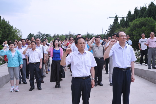 在习仲勋陵园,王志刚、白黎代表学校党政向习仲勋塑像敬献了花篮,全体人员向习老塑像三鞠躬,白黎带领大家举行了庄严的重温入党誓词活动。在宣誓活动后,王志刚作了重要讲话,他要求全体正处级干部要通过凭吊、参观、学习活动,学习习老坚定的共产主义信念和坚强的党性原则;学习他大公无私的优秀品质和“战斗一生,快乐一生;天天奋斗,天天快乐”的思想境界;学习他崇高的无产阶级革命风范。继承老一辈无产阶级革命家的光荣传统,坚定理想信念,坚持开拓创新,勤奋努力工作,为我校的发展贡献自己的力量。最后,他对全体正处级干部提了几点希望和要求:一要切实增强理论学习的自觉性,树立终身学习的观念,养成勤于学习,善于思考的良好习惯,不断提高自身的思想素质和业务能力;二要树立大局观念和全局意识,不断提高干部队伍兴校办学的能力和水平;三要加强党性修养,增强党性观念,恪守政治诺言,牢固树立社会主义核心价值观,坚定走中国特色社会主义的理想信念;四要切实改变工作作风,自觉践行党的群众路线,树立强烈的责任意识、服务意识和创新意识,不断提高管理能力和管理效率。