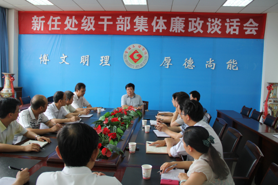 6月18日下午,校纪委在新校区第一会议室对新提拔任用的正副处级干部进行集体廉政谈话。校党委副书记、纪委书记米晓东作重要讲话,校纪委副书记邓忠良主持会议。