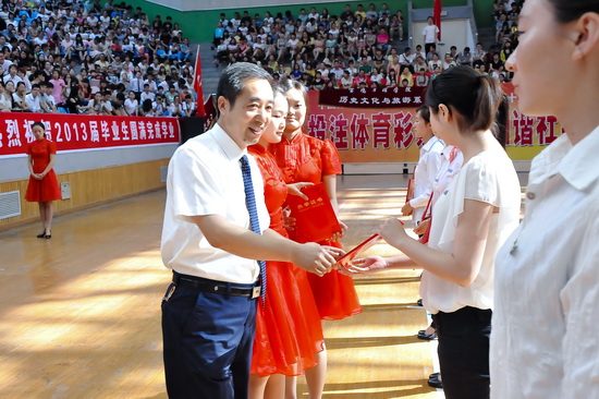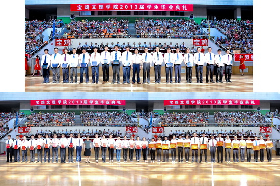 6月25日上午,我校在宝鸡市体育馆隆重举行2013届学生毕业典礼。校党委书记王志刚,校长白黎,党委副书记米晓东,副校长傅志军、赵荣侠、杨子元等出席毕业典礼。典礼由米晓东主持。