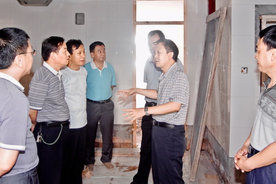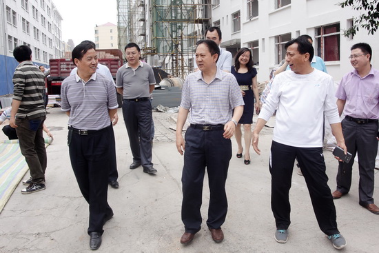 7月11日上午,校党委书记王志刚,副校长杨子元等领导来到新校区14、15号学生公寓楼施工建设工地,检查工程建设进展情况。