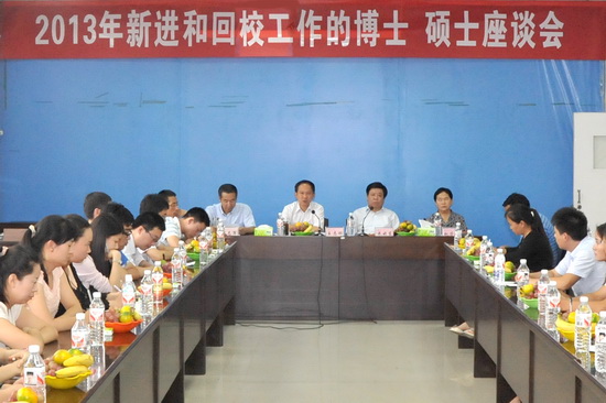 9月3日下午,我校在新校区图书馆514会议室召开2013年新进和回校工作博士、硕士座谈会,庆祝第29个教师节。校党委书记王志刚,校党委副书记米晓东,副校长傅志军、赵荣侠出席座谈会。王志刚作了重要讲话,米晓东主持会议。