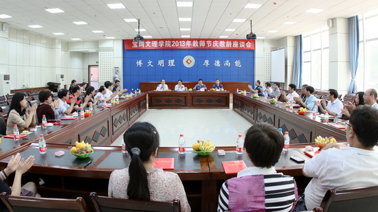 9月10日下午,校工会在新校区甘棠厅召开2013年教师节庆教龄座谈会。校党委书记王志刚,校长白黎,校党委副书记、工会主席李全武,副校长杨子元出席会议并向年满25年、30年教龄的教职工颁发了荣誉证书。今年满25年和30年教龄的教职工以及党办、组织部、宣传部、院办、教务处、人事处等部门负责人参加了座谈会。王志刚作重要讲话,白黎主持会议并作总结讲话。
