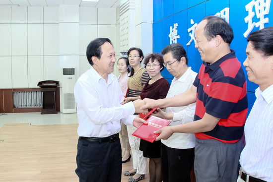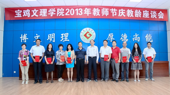 他热忱地希望同志们以庆教龄为新的起点,为学校的发展再立新功,再做新贡献。他鼓励大家应当在师德师风方面再做表率,应当在筹建宝鸡大学,推动学校科学发展,实现宝大梦的过程中再立新功。他说,学校发展目标已明确,任务很艰巨,使命很崇高,我们必须卧薪尝胆,凝心聚智,苦练内功,增强实力,提升水平,提高质量,强化特色,为实现学校的宏伟目标而不懈努力。