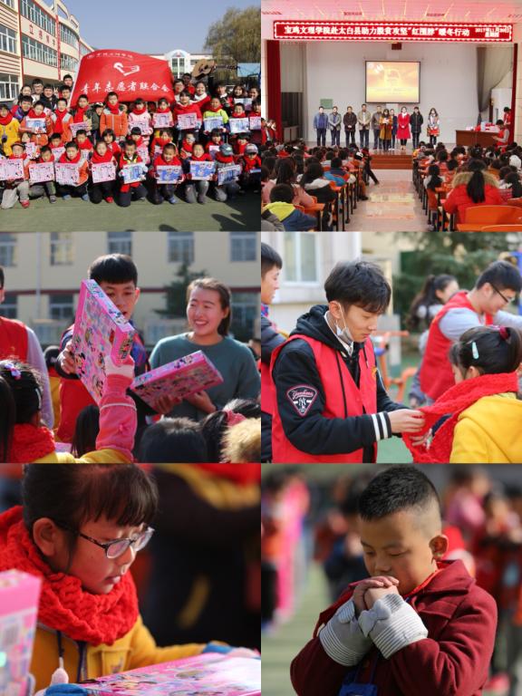 11月30日,校团委、扶贫办公室组织我校15名青年志愿者前往我校对口帮扶的太白县马耳山村,开展以“一红带一片,一片暖一冬”红围脖暖冬行动,将我校大学生亲手编织的110条爱心红围脖、手套和学习用品送到孩子们手中,并在鹦鸽镇中心小学开展了“大手拉小手”青春助学结对活动。