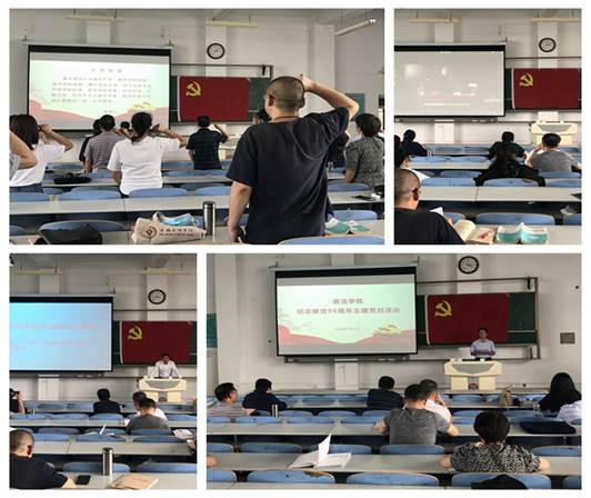 7月1日下午,政法学院在思贤楼520教室开展了以“庆祝建党99周年”为主题的党日活动,全体教工党员参加了线下活动,学生党员线上同步参会。活动由党委副书记王宏江主持。