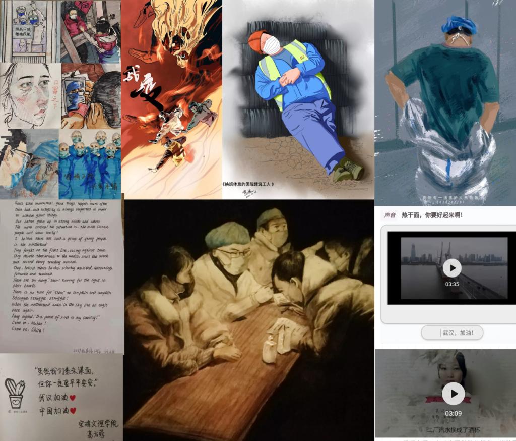 二是组织开展主题线上作品创作宣传活动。活动期间,各团组织积极倡导青年学生结合专业特色,通过音乐创作、漫画绘画、图片照片、短视频等多种形式,开展以为抗“疫”加油助力、向防疫一线工作人员致敬、分享身边的感人故事等多种形式的主题创作展示活动。美术学院、音乐学院和计算机学院等团总支指导支部团员青年创作了一批内容积极、导向正确、喜闻乐见、形式丰富的抗疫主题作品,拍摄宣传祝福视频80余个,绘画作品100多幅;化学化工学院、数学与信息科学学院和经济管理学院等团总支组织发起了线上公开承诺活动,引导团员青年理解、配合并支持学校疫情防控各项措施;学生会、社团联合会等直属团支部开展了“我为武汉加油”手写祝福活动,向广大团员青年传递温暖正能量,进一步提升了舆论引导的实效性。