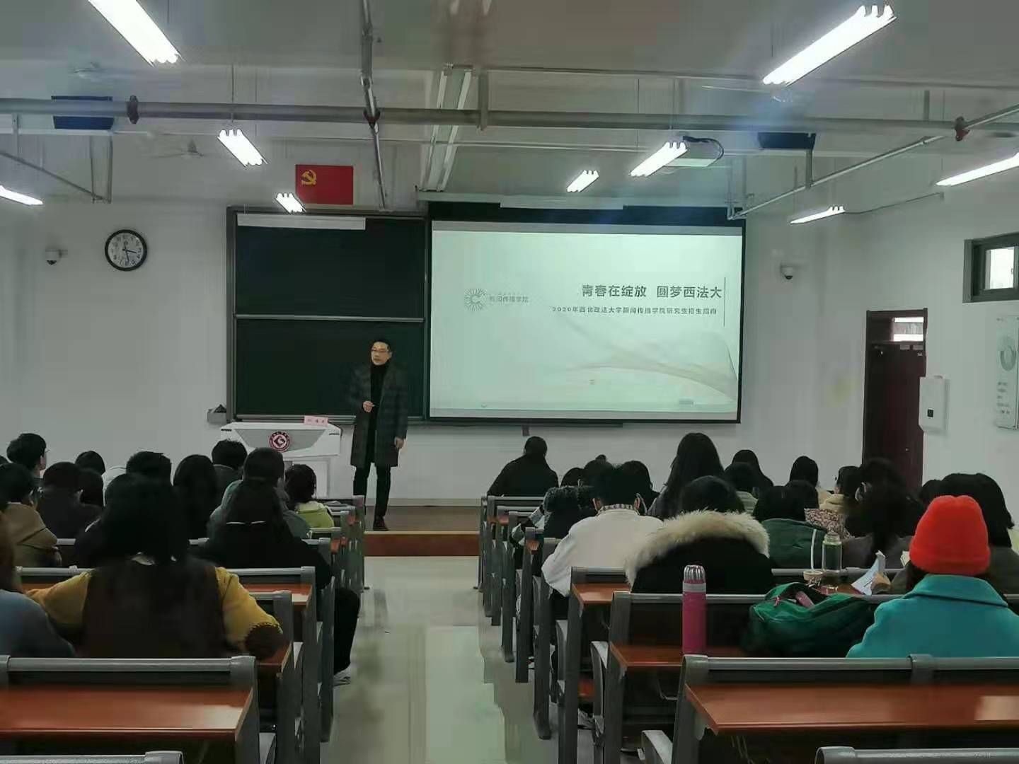 根据计划,西北政法大学新闻传播学院院长助理孙海荣博士在博文楼508教室,宣讲了该校新闻传播学硕士相关招生政策,热忱欢迎我校优秀本科学子报考该校硕士。宣讲会由文传院党委副书记郝晓辉主持,新闻专业、广告学专业等近100人听取了报告。(文学与新闻传播学院 文/孙新峰 图/赵涛 审核/兰拉成)