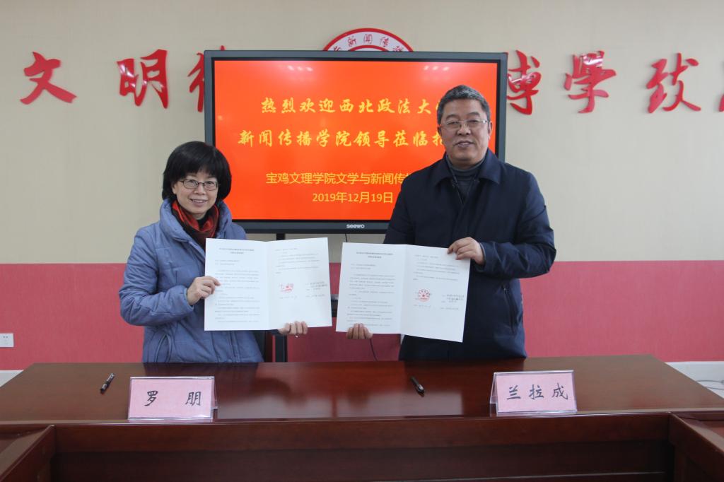随后举行了西北政法大学、宝鸡文理学院新闻与传播学硕士研究生优质生源基地共建协议签字仪式,标志着两校合作培养研究生工作正式启动。