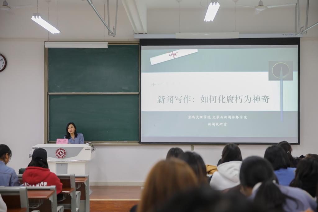 11月20日下午,陕西日报社社会新闻部副主任李蕊在博文楼601教室作了题为《新闻写作:如何化腐朽为神奇》的讲座,新闻教研室全体教师和2019级新闻专业学生聆听了讲座。讲座由文学与新闻传播学院新闻教研室主任余亚莉主持。