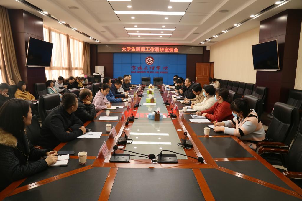 11月13日上午,宝鸡市医疗保障局、税务局,宝鸡市医疗保障经办中心,宝鸡市渭滨区医疗保障局、税务局,宝鸡市渭滨区医疗保障经办中心一行19人来我校调研大学生医保工作。座谈会由学工部副部长、学生处副处长、大学生资助管理中心主任张红亮主持。