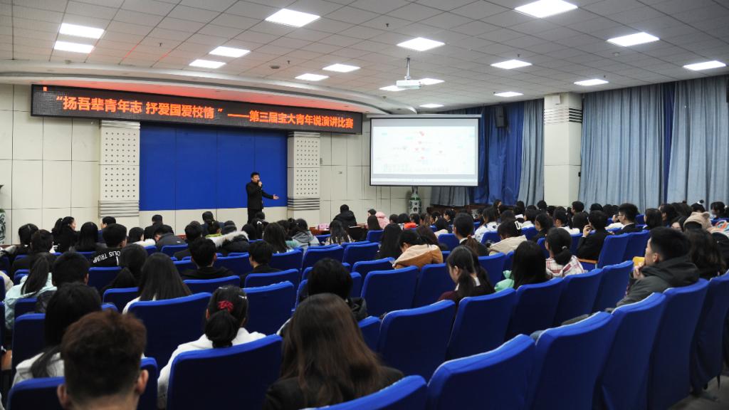 12月9日晚,我校“扬吾辈青年志,抒爱国爱校情”第三届宝大青年说演讲比赛在高新校区木铎厅举行。党委宣传部部长冯飞龙,党委学工部部长、学生处处长冯森,马克思主义学院党总支书记张选朝,财务处副处长克寒秋,校团委副书记马睿担任本次比赛评委。
