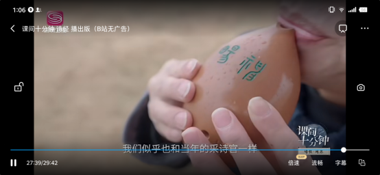 近日,深圳卫视“课间十分钟”(第三季)诗经阅读节目播出,我校文学与新闻传播学院王渭清副教授受邀与主持人一道在《诗经》发祥地的周原,围绕《诗经》中人与土地、农事诗祭祀诗在周原的民俗文化遗存等做了对谈讲解;此外,剧组特邀美术学院魏育龙副教授在片尾吹奏陶埙古典乐曲配音。节目播出后,又在B站APP传播,产生了良好反响。