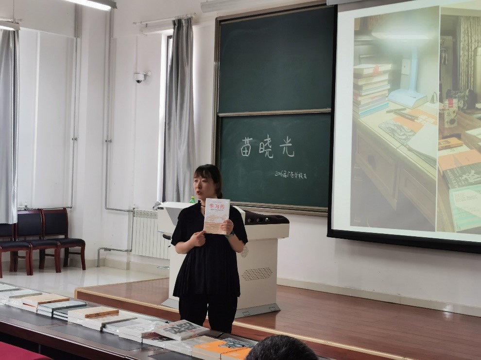 讲座结束后,在答疑环节,苗晓光女士为在场聆听讲座的学生答疑解惑,并捐赠了相关的专业书籍。