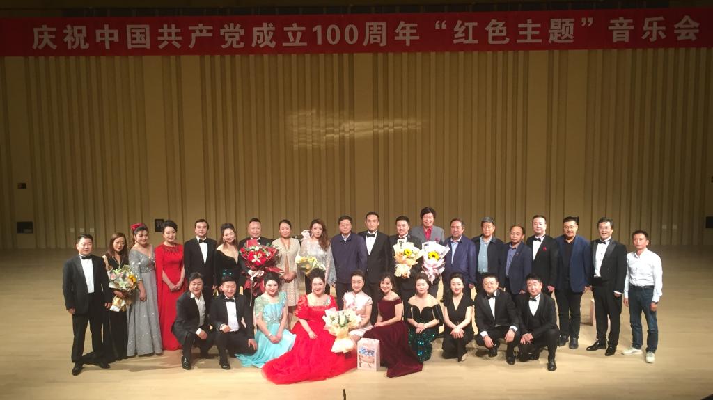 5月26日晚7时延安大剧院音乐厅座无虚席,音乐会上来自陕西音乐教育联盟的14所学校声乐老师代表共同演绎经典之作献礼中国共产党成立100周年。音乐会分为:第一乐章《开天辟地》、第二乐章《浴血奋战》(站起来)、第三乐章《开放改革》(富起来)、第四乐章《中国梦复兴之路》(强起来)四个乐章;音乐会直奔主题,在所有演员齐唱《唱支山歌给党听》歌曲中拉开音乐会帷幕,音乐会由24首歌颂党和歌颂爱国情怀中国声乐作品组成。薛锋堂老师饱含深情的演绎了爱国情怀的中国艺术作品《祖国慈祥的母亲》完美的展示了华夏儿女对祖国母亲的感激之情和无限忠诚,赢得了阵阵掌声;音乐会历时2小时在合唱《我爱你中国》高亢的旋律中落下帷幕。