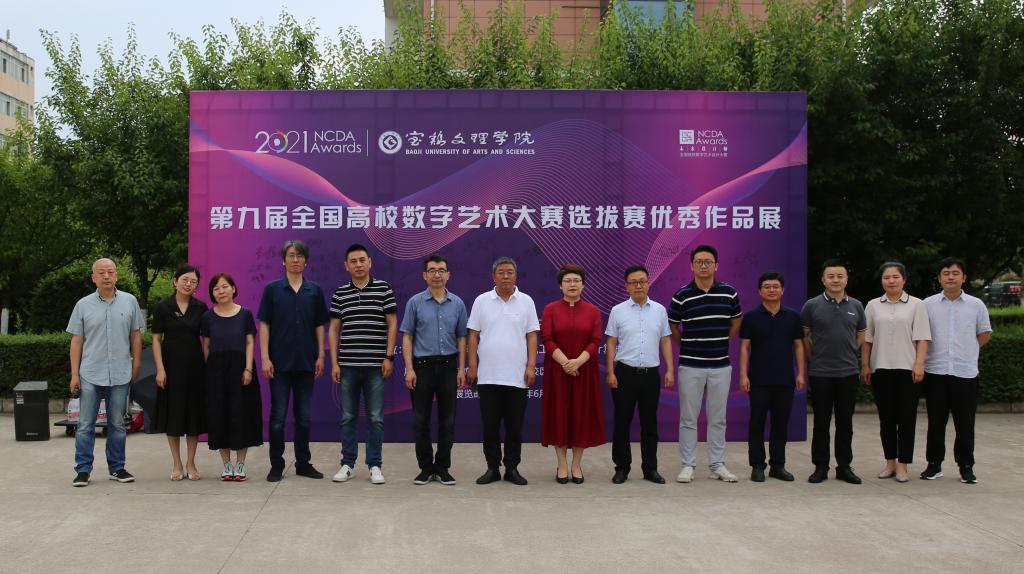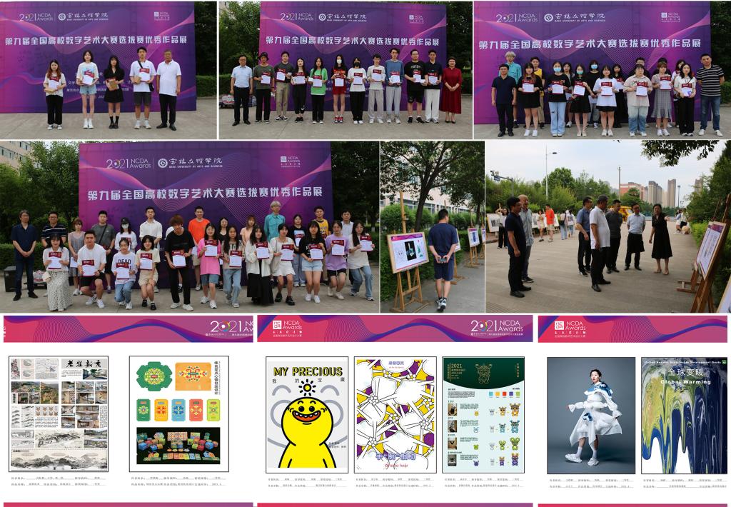 美术学院党委书记田富平宣布展览开幕。美术学院院长李强在致辞中肯定了学院近年来通过“以赛促教”在全国高校数字艺术大赛中取得的成绩,他以大赛宗旨“设计为人民服务,培养未来设计师”激励学生,引导大学生将专业知识服务于社会,提升大学生的设计创新与实践能力,成为未来的主力设计师。文学与新闻传播学院院长兰拉成、机械工程学院院长王肖烨、计算机学院院长张光南、教务处副处长文昊、美术学院教师高寒冰、李新昌、马劭磊、何飞龙分别为获奖学生颁发了奖状、奖品。