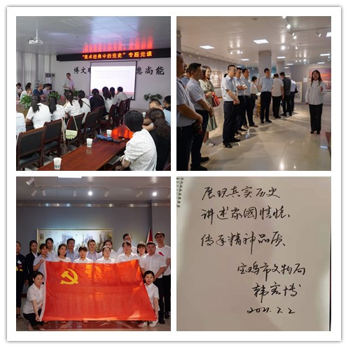 7月2日下午,宝鸡市文物局、市保障性住房资产运营管理有限责任公司、建设银行股份有限公司宝鸡金台支行、宝鸡日报社综合第二党支部等四家单位80余名党员来我校开展主题党日活动。