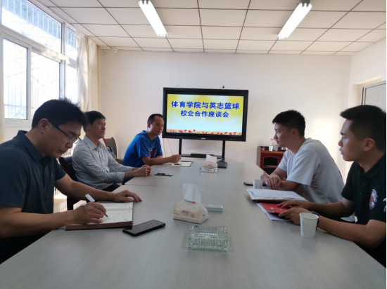 于奎龙对英志篮球俱乐部一行表示欢迎,详细介绍了体育学院的基本概况、师资队伍、教学科研、人才培养等情况,他指出学院目前十分重视发挥专业优势开展校企合作,不断探索校企合作的新模式,期待双方能在学生实践能力培养、课程模式创新、学生就业指导及师资力量共建、篮球教学共建等方面进行深度合作。